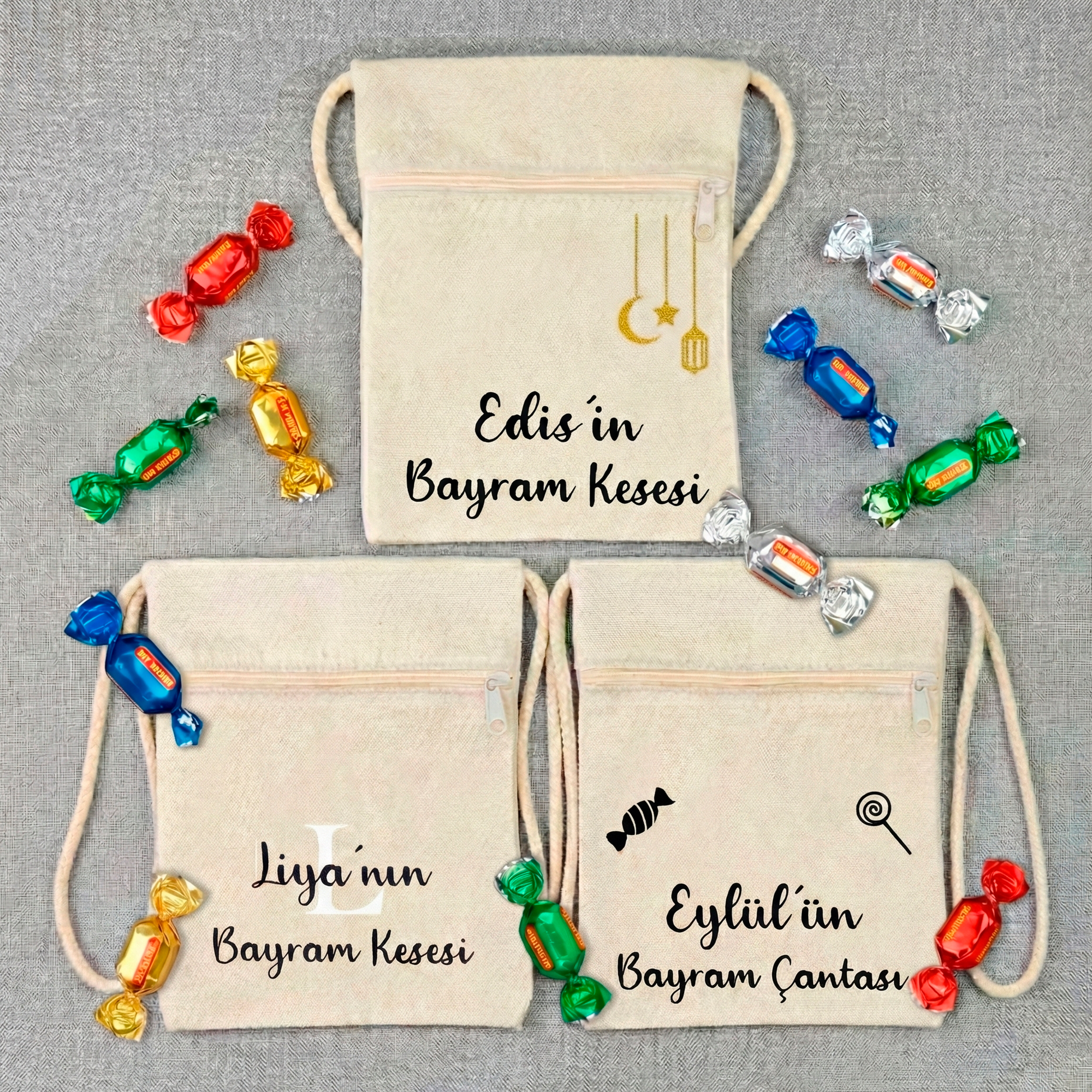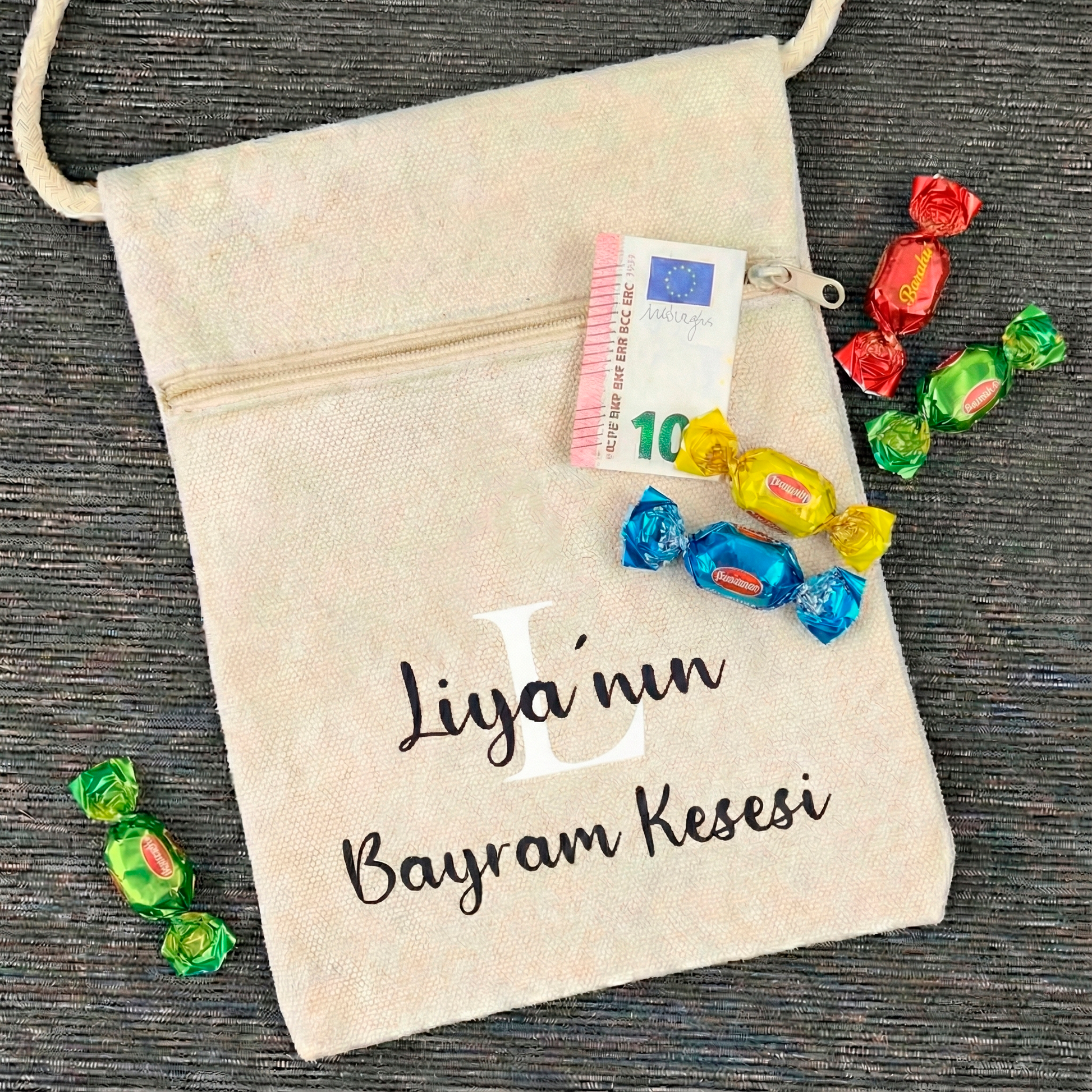 Unsere personalisierten Bayram-Taschen sind das perfekte Geschenk für Kinder, Enkelkinder, Geschwister oder kleine Gäste zum Zuckerfest (Eid). Sie bieten nicht nur Platz für Süßigkeiten & kleine Geschenke – sondern sind ein ganz persönliches Erinnerungsstück voller Bedeutung.