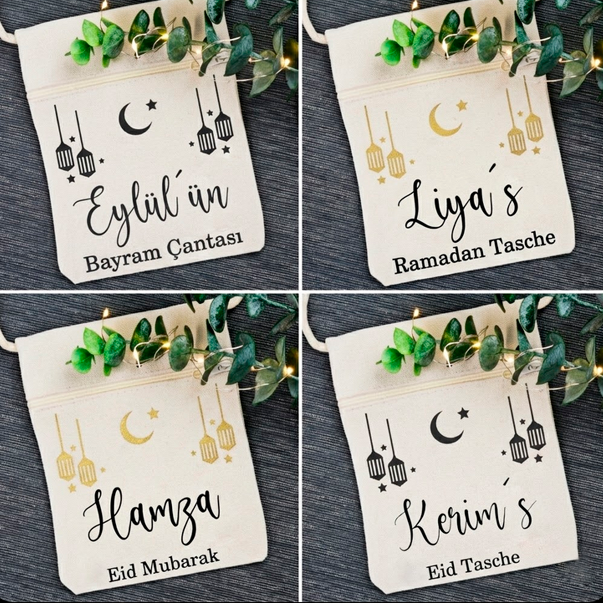 Unsere personalisierten Bayram-Taschen sind das perfekte Geschenk für Kinder, Enkelkinder, Geschwister oder kleine Gäste zum Zuckerfest (Eid). Sie bieten nicht nur Platz für Süßigkeiten & kleine Geschenke – sondern sind ein ganz persönliches Erinnerungsstück voller Bedeutung.