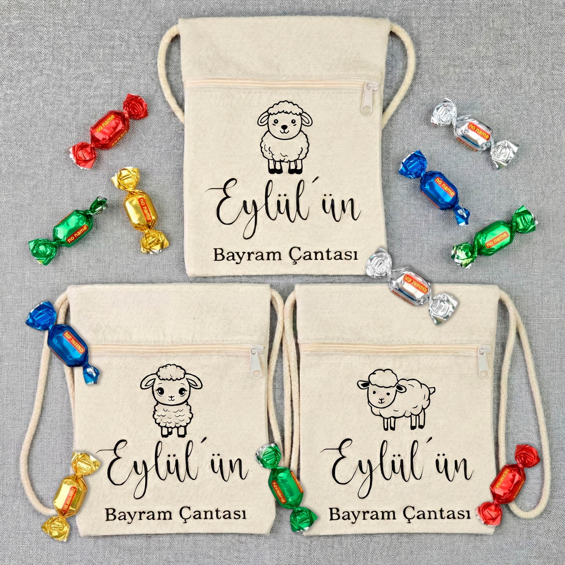 Bayram / Eid Tasche mit Namen – Personalisierbar (Eid Mubarak, Ramadan Geschenk – Motiv Schäfchen)