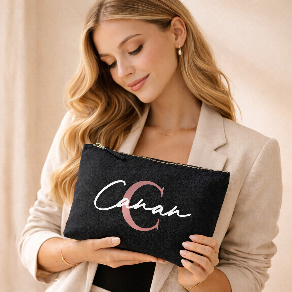 Personalisierte Accessoires-Tasche | Kosmetik- & Kulturtasche mit Namen | In 3 Größen verfügbar mit Anfangsbuchstaben