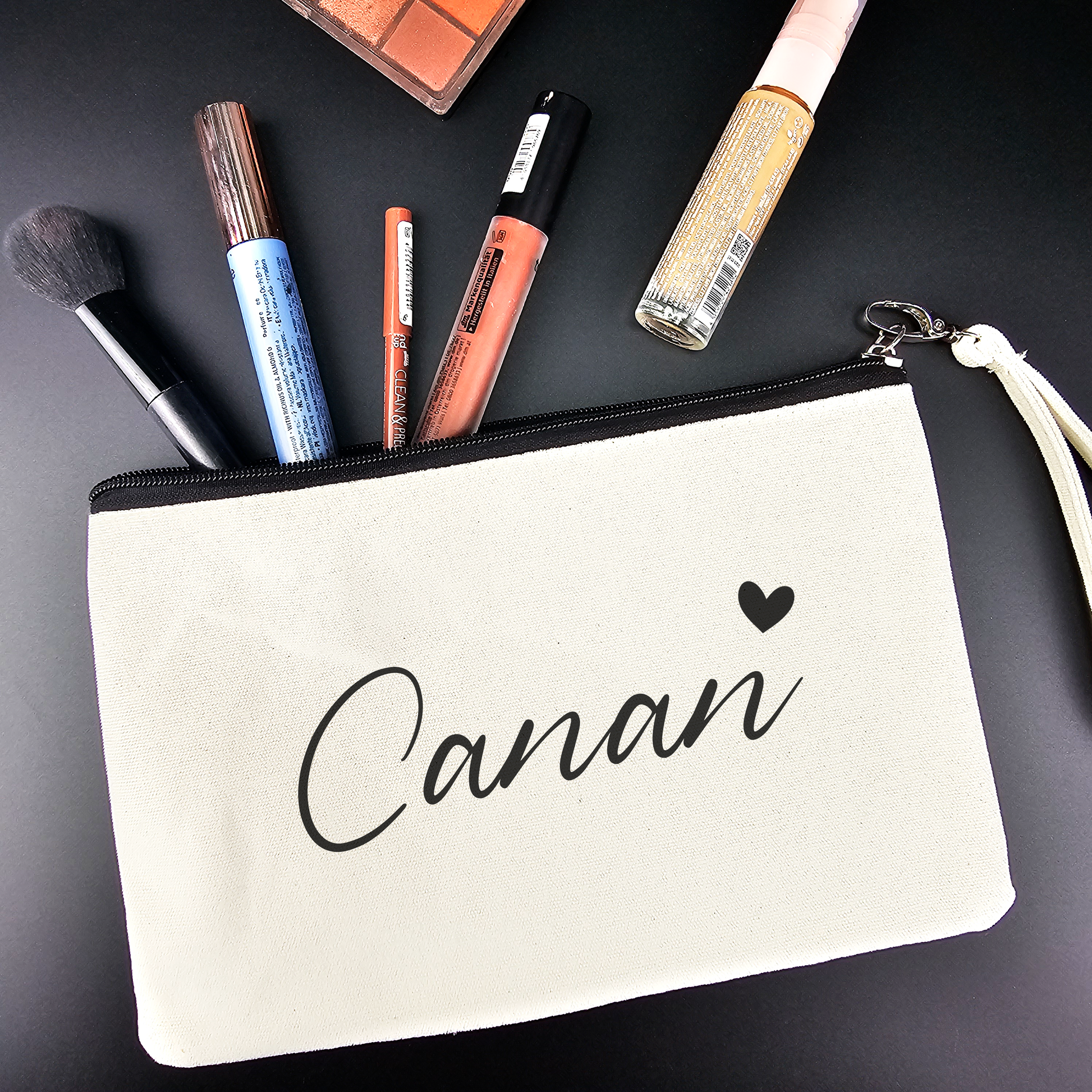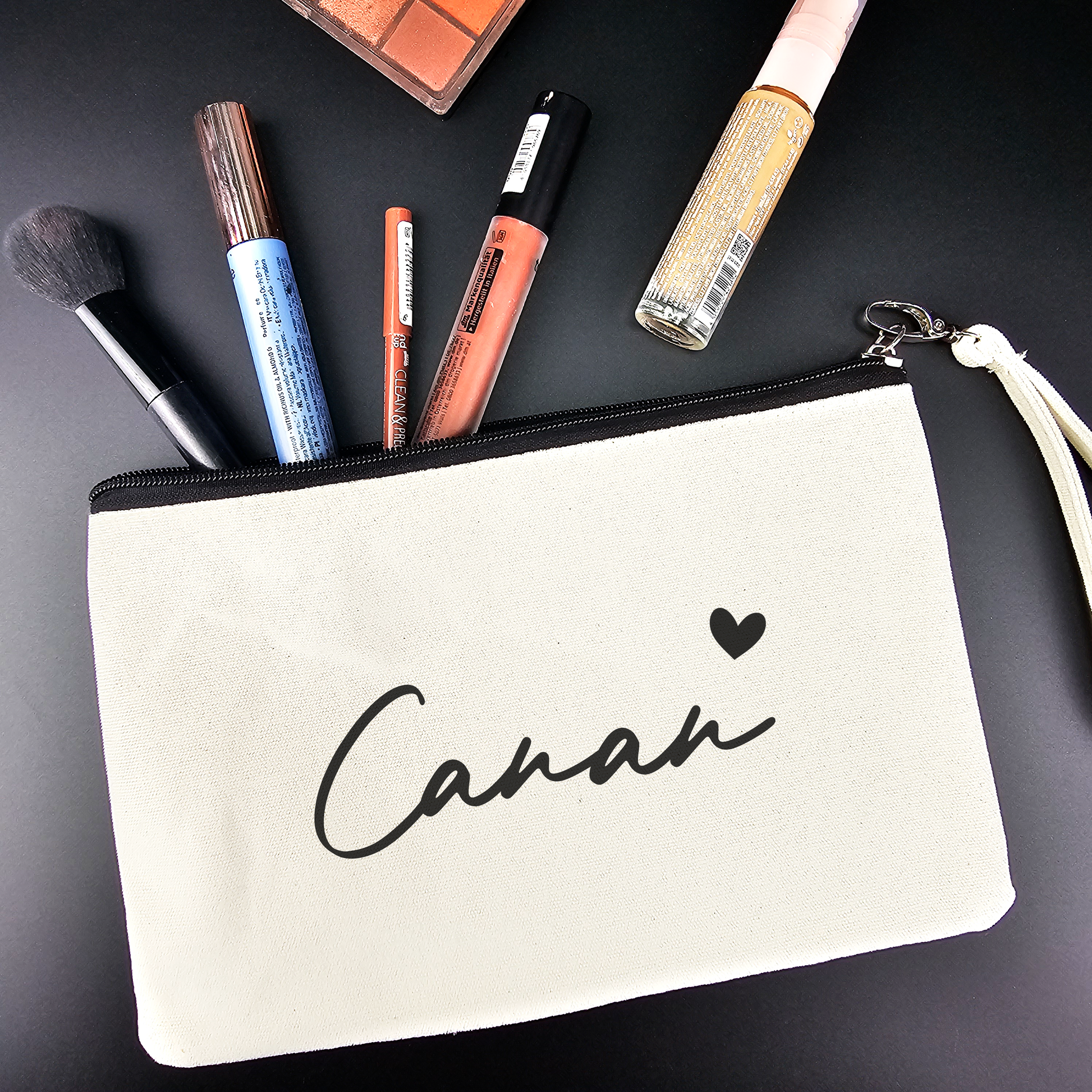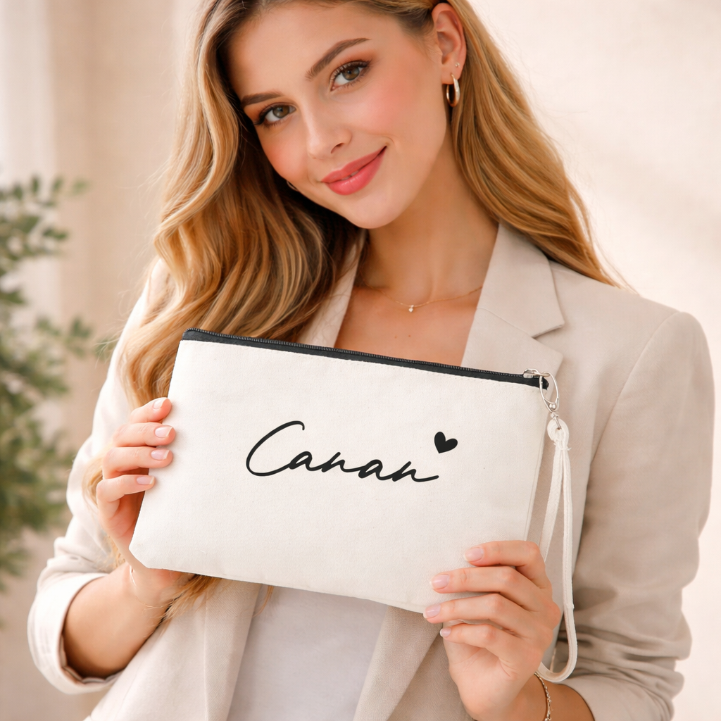Personalisierte Kosmetiktasche aus Baumwolle | Multifunktionelle Accessoire-Tasche mit Namen