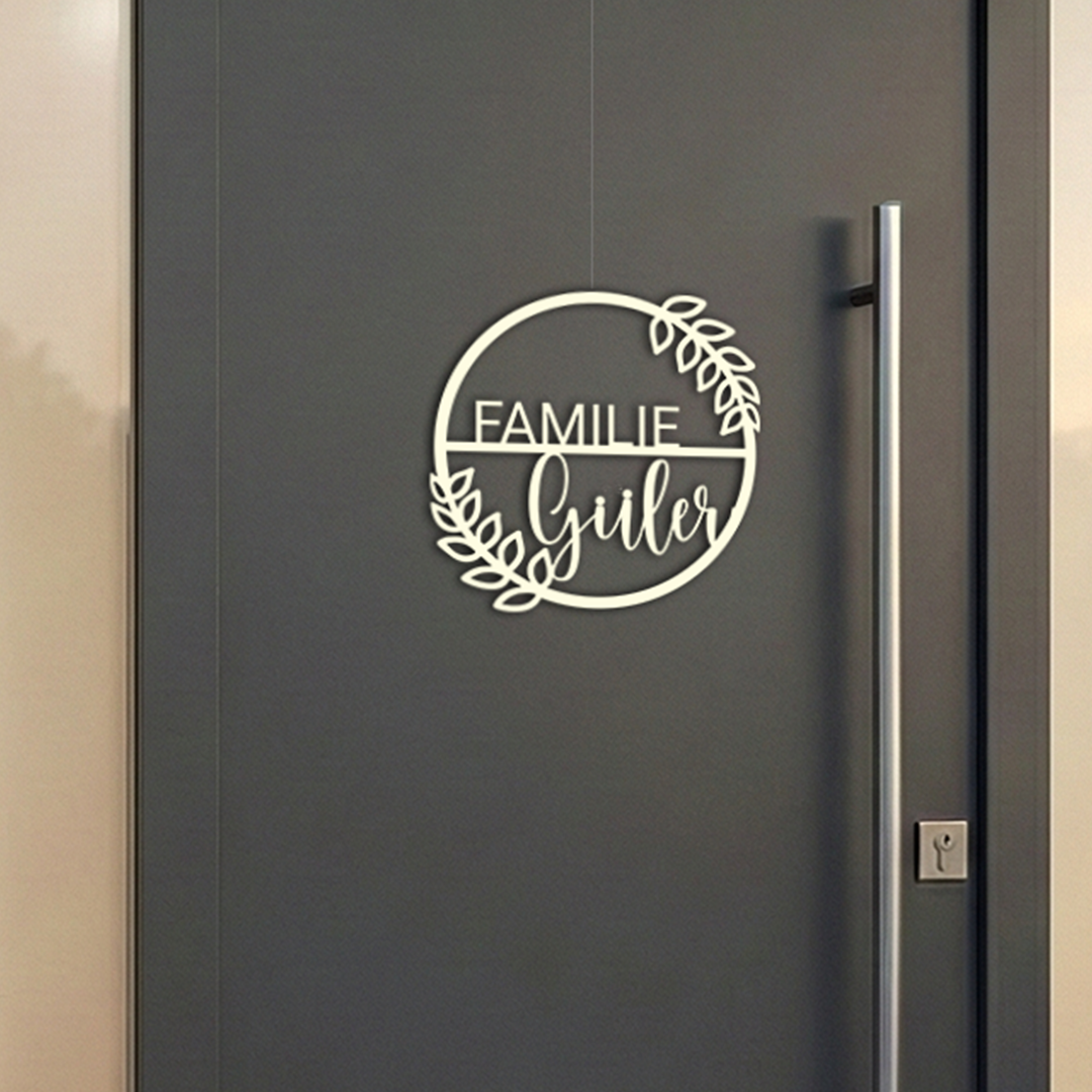 Der Familienname macht jedes Schild zu einem einzigartigen Unikat. Das klare, runde Design wirkt zeitlos und fügt sich harmonisch in verschiedenste Wohnstile ein – von modern über skandinavisch bis klassisch.