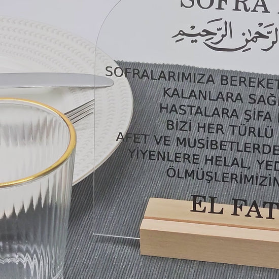 ✨ Sofra Duasi Acrylschild mit Holzsockel – Stilvolle Tischdeko mit spiritueller Bedeutung ✨